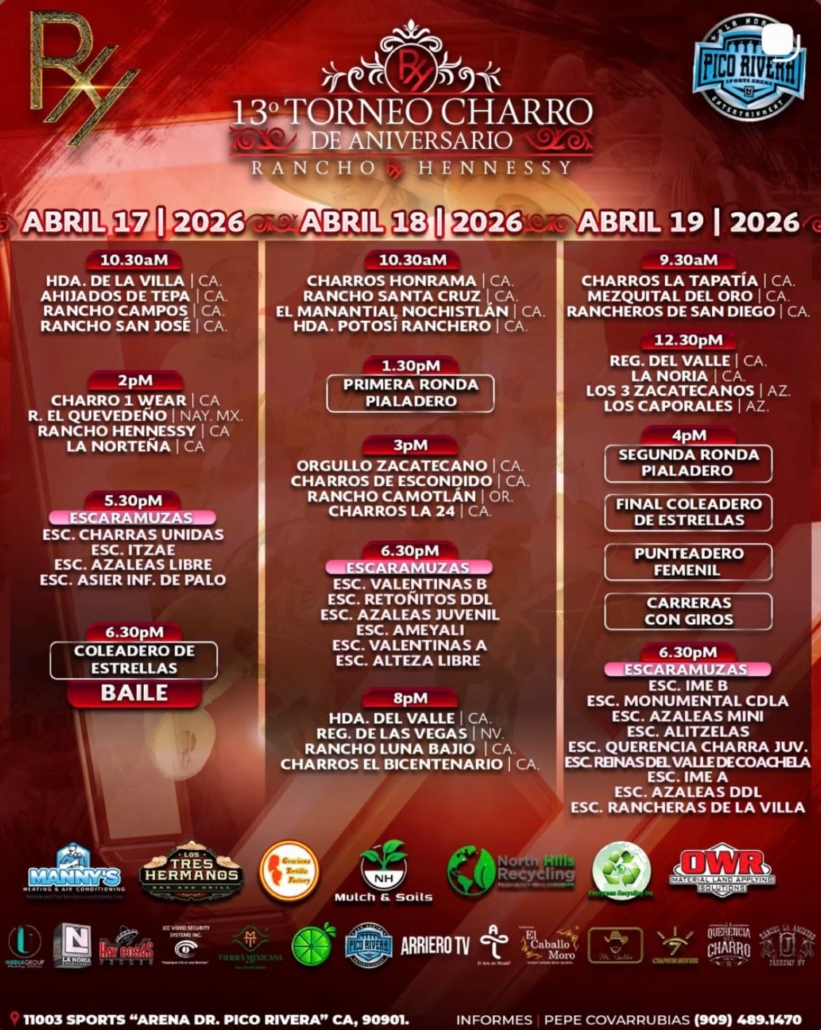Abr. 17 al 19 | 13 Torneo Charro Rancho Hennessy
