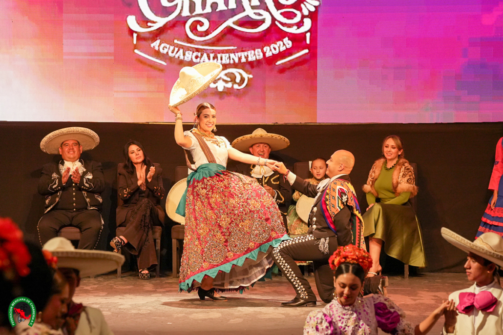 Este acto estuvo encabezado, además de la mandataria estatal, por el presidente de la Federación Mexicana de Charrería, Salvador Barajas del Toro, quien estuvo acompañado por su distinguida esposa, Ana Cristina Ortega, y su hija Valentina; SGM Natalia I, reina nacional de la Federación; Verónica González, directora general del Buró de Congresos y Visitantes del Estado de Aguascalientes, y el presidente de la Unión de Asociaciones de Charros de esta entidad, Gustavo Jiménez Castillo.