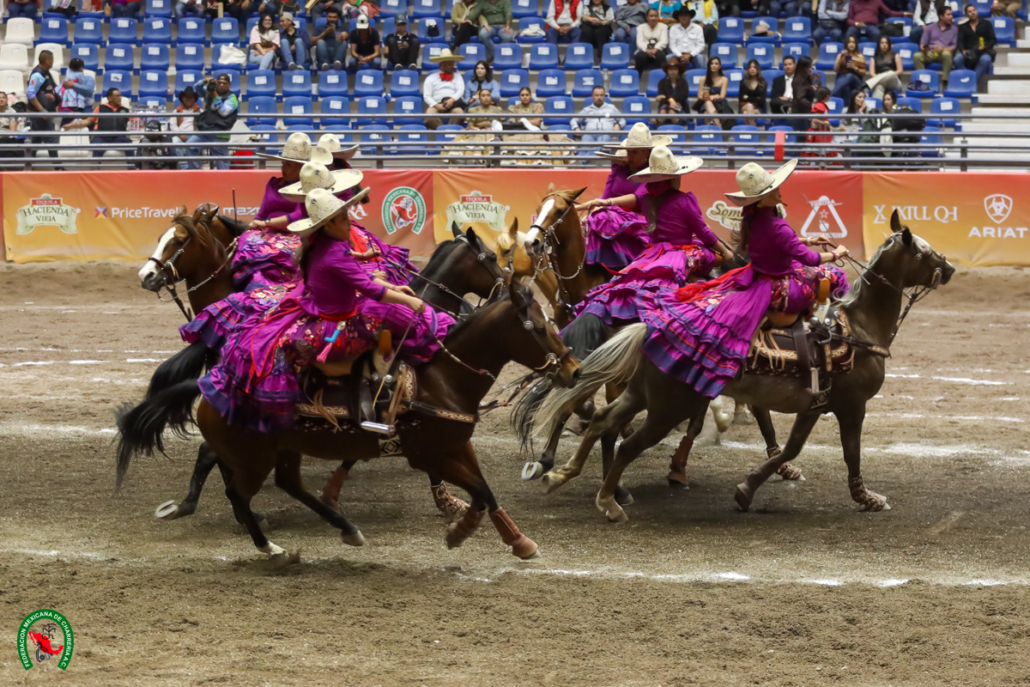 • Las damas charras de Bahía de Banderas, Nayarit, actuaron por nota en la primera competencia del viernes y ahora cabalgan en la tercera posición de las escaramuzas