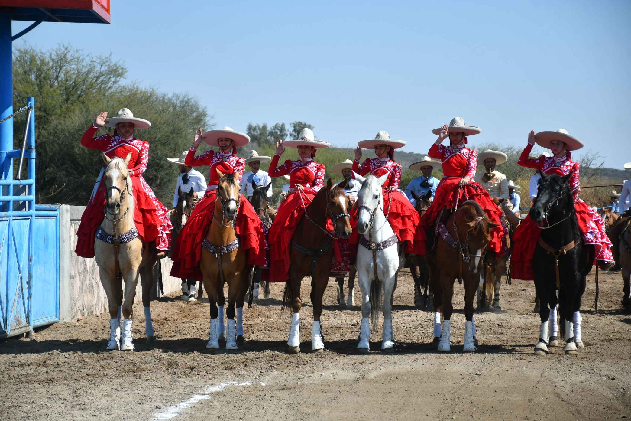 Excelente resultado el evento de la charreada de gala en el marco de las fiestas de Tlacuitapa, Jal. Delegación que pertenece a la Unión de San Antonio, Jal. En el protocolo de inauguración previo el desfile de presentación de los equipos y de la escaramuza El Centenario portando su banderín Silvana Emiret, siguiendo el equipo de Tamaulipecos, el Pbro. Pascual Avelar Márquez, Rancho San José y Rancho La Trinidad.